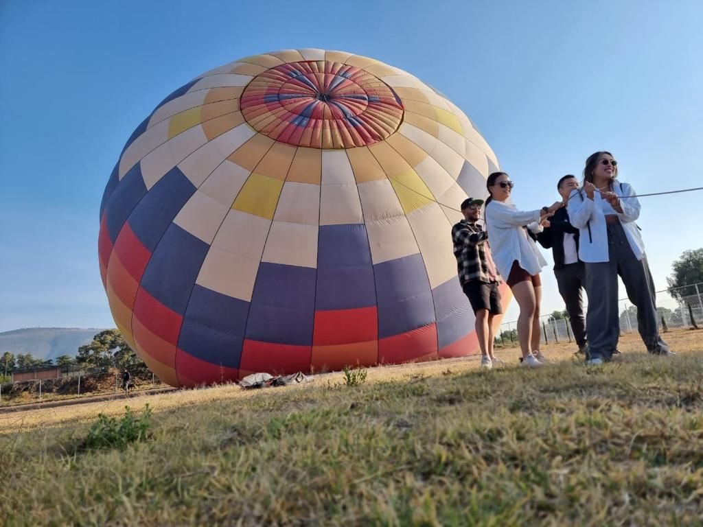 Early in the morning, we will pick you up at your hotel or accommodation in Mexico City to transfer to the balloon-port located in the Teotihuacán area, where you will be welcomed with a coffee bar, cookies and fruit before the flying experience. in a balloon (if you choose the option with transportation).