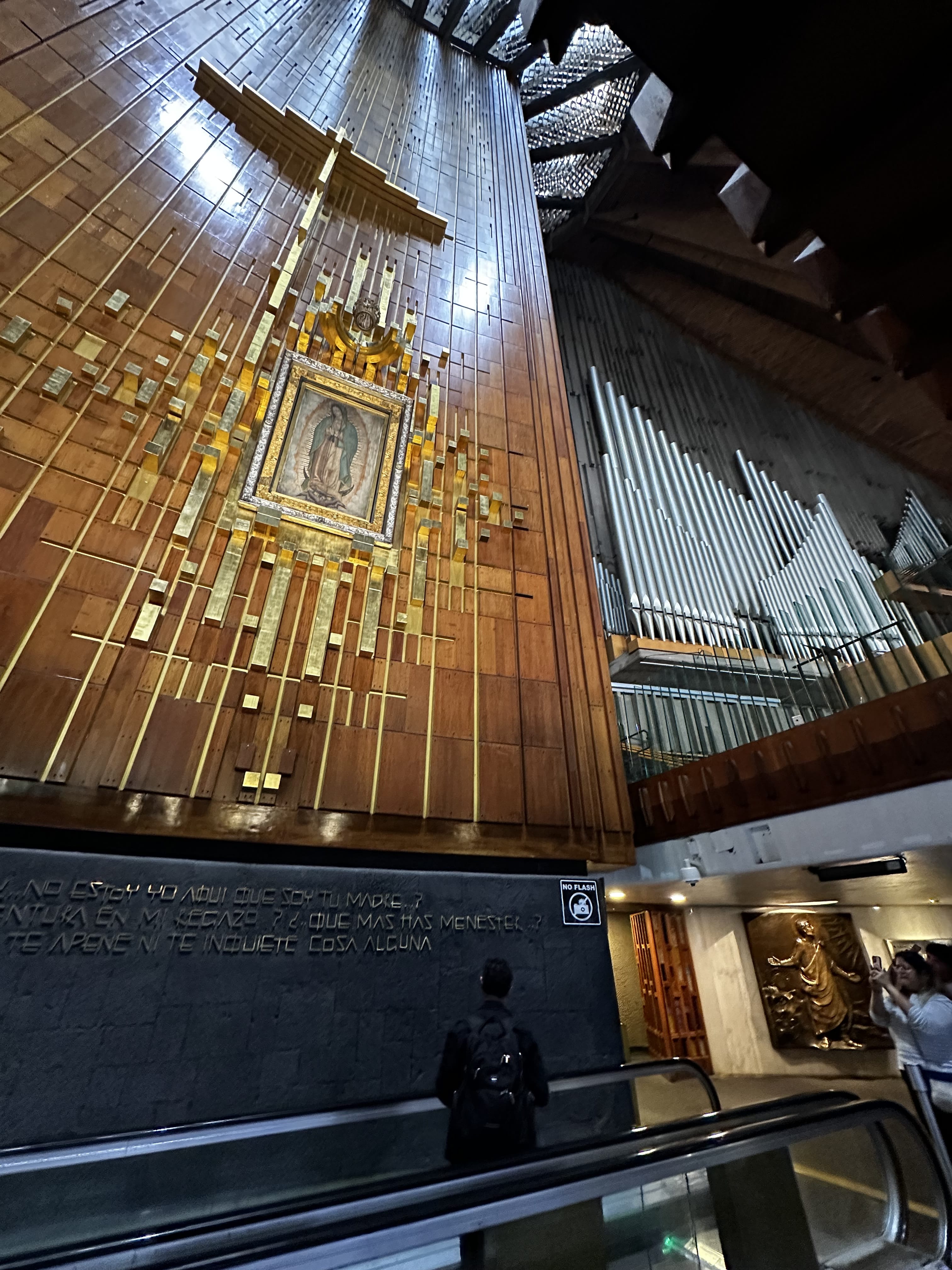 Finally, we’ll visit the New Basilica of Our Lady of Guadalupe, where the original image of the Virgin of Guadalupe is displayed, facing the faithful who come to see her every day.